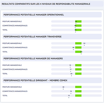 Enrichissez votre vision de chaque manager grâce à des dizaines de paramètres – Leadership, 13 Compétences managériales, intelligence collective, potentiel stratégique – et découvrez où ils sont le plus performants